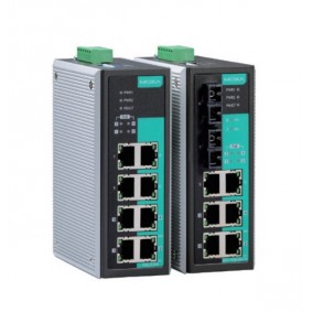 EDS-P308-S-SC-T Switch Ethernet no administrado con 3 puertos 10 / 100BaseT (X), 4 puertos PoE y 1 puerto monomodo 100BaseFX con conector SC, -40 a 75 ° C. |